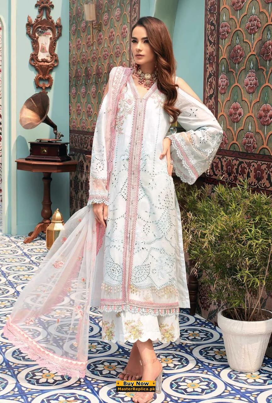 Flaunt elegance in this exquisite embroidered Master Replica from the Latest Collection of Noor by Saadia Asad.