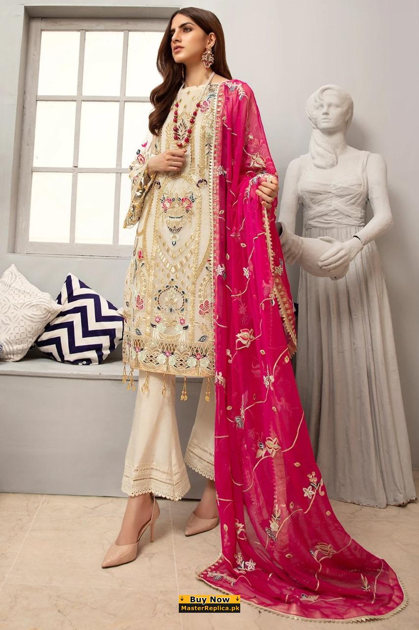 Exude a minimalist sobriety in this monotonous intricate embroidered Master Replica from the Latest Collection of Emaan Adeel.