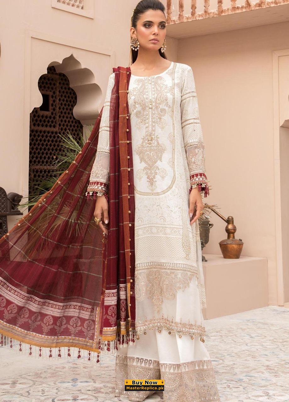 An example of beauty and elegance. Look breathtakingly stylish in this embroidered Master Replica from the Latest Collection of Sana Maria B.