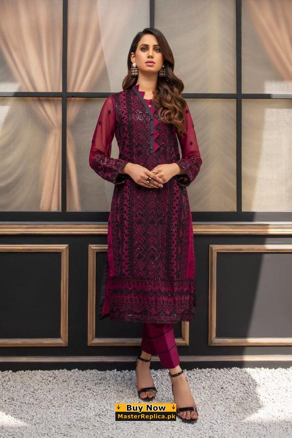 Dazzle in this alluring embroidered Master Replica from the Latest Azure Chiffon Collection depicting the Finest Craftsmanship.