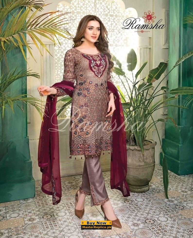 Gussy up the glamour with this intricate embroidered Master Replica from the Latest Collection of Ramsha.