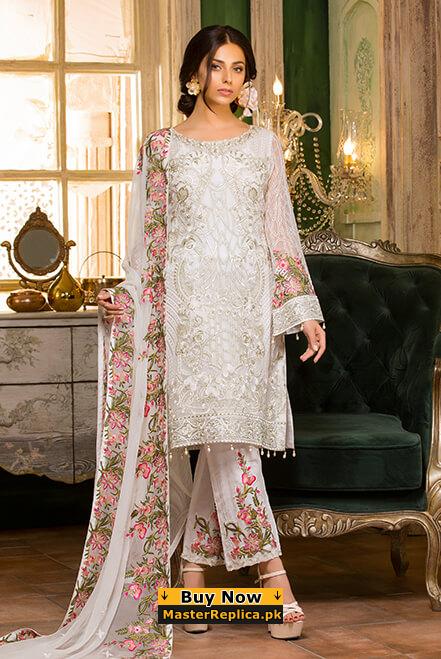 Ramsha White Chiffon Dress Master Replica