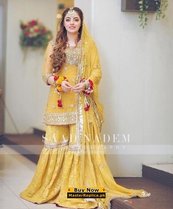 An example of beauty and elegance. Look breathtakingly stylish in this embroidered Master Replica from the Latest Designer Wedding Collection.