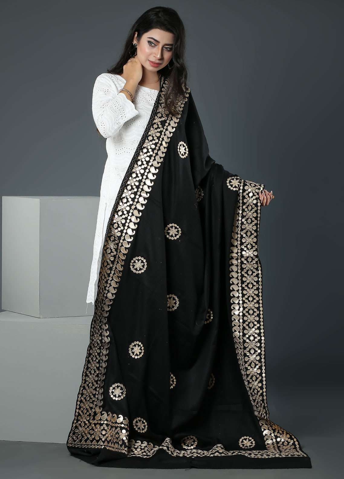 Fully Embroidered Zari work Shawl with Four-Side Border