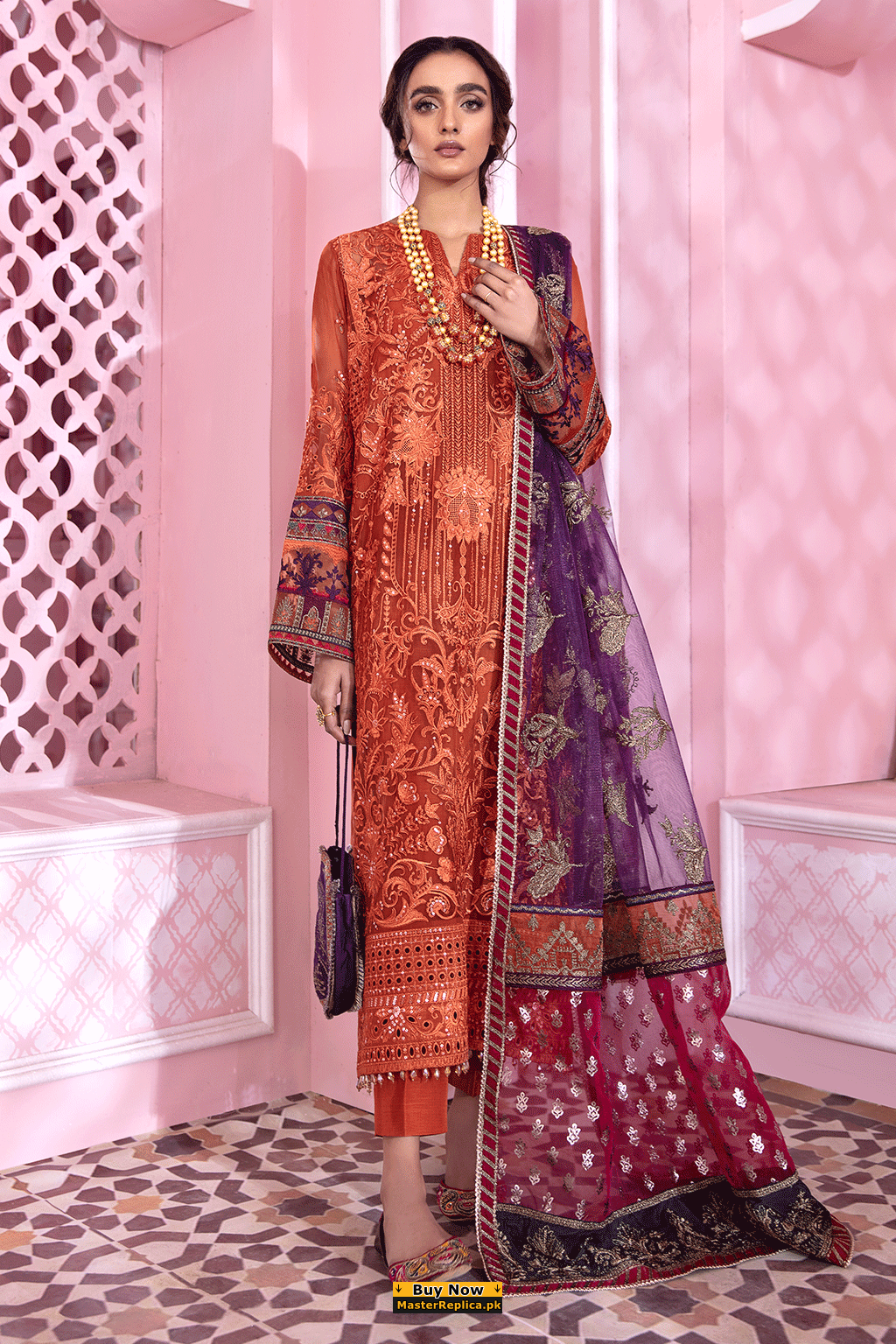 Iznik Orange Chiffon Dress Master Replica