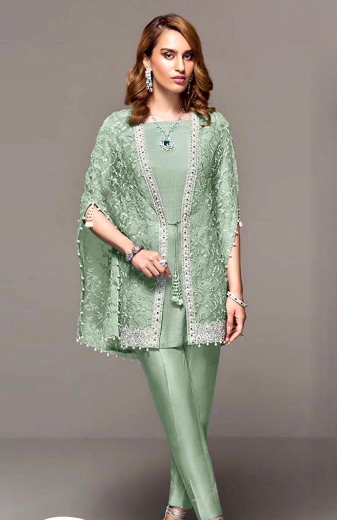 Front & Back same embroiderd given fabric full shirt. Size length 44inch. Width 35 inch. Extra neck patti given 1 yard. FABRIC : ORGANZA