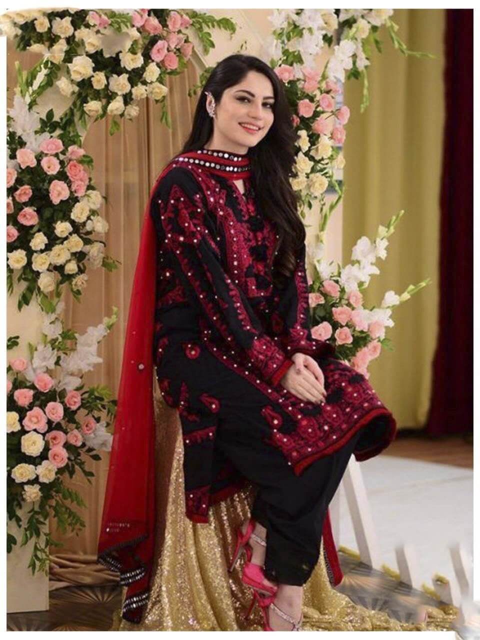 - Dupatta * Ready chiffon dupatta Embroidered with 4 sided lace with full mirror work