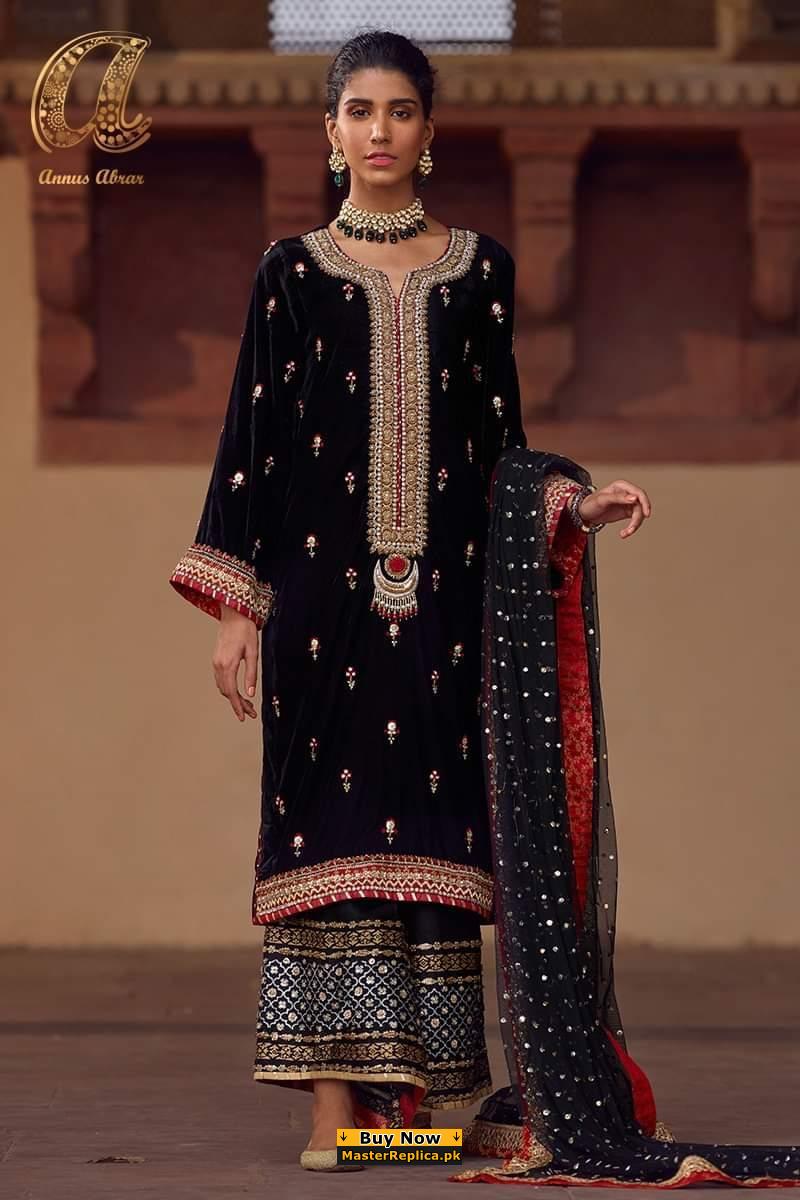 An artistic vision of classic style and luxurious detailing, this Master Replica from the Latest Collection of Annus Abrar is perfect for any occasion.