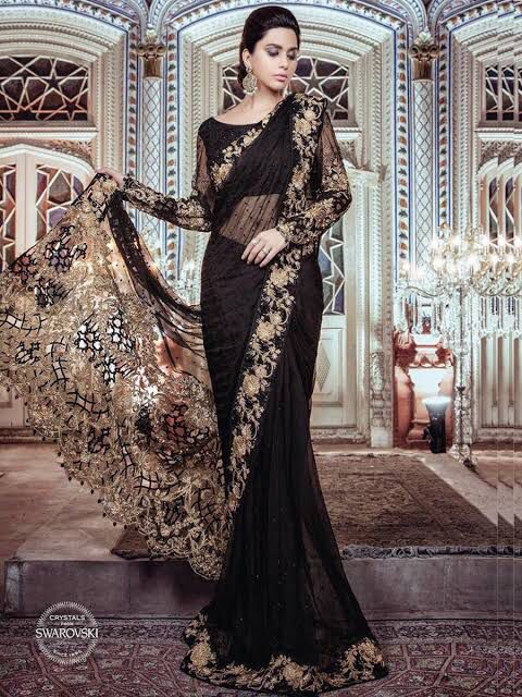 Maria b Black Chiffon Saree Collection Replica 2021