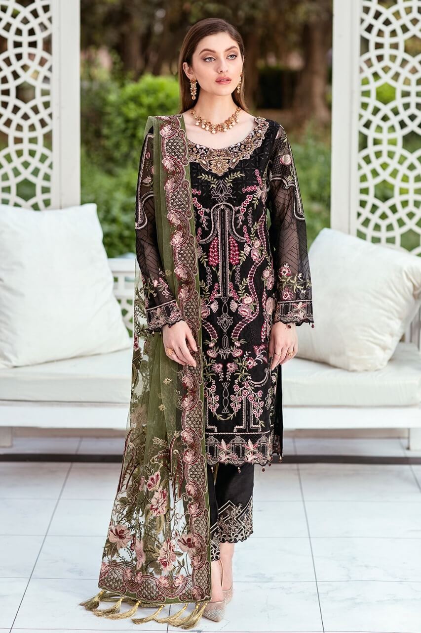 Ramsha Black Collection Organza Master ReplicaAn example of beauty and elegance. Look breathtakingly stylish in this embroidered Master Replica from the Latest Collection of Ramsha.Fabric: Organza (3 Pc Unstitched)Fully Embroidered Organza Sequence work Front and BackEmbroidered Organza
