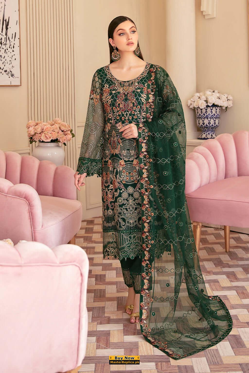 Fall in love with this Eye Catching Master Replica from the Latest Collection of Ramsha depicting the finest craftsmanship.