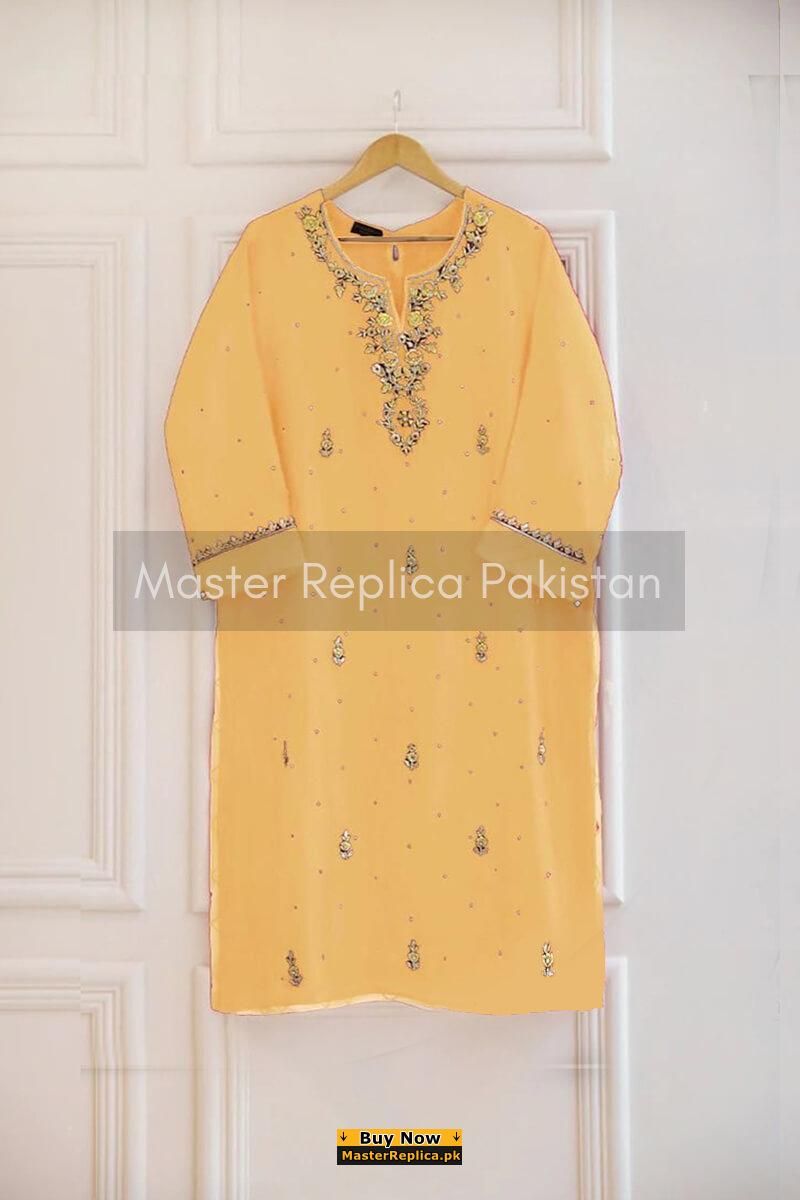 A must have creation for day to evening wear.This Master Replica from the Latest Collection of Agha Noor is perfectly designed with intricate embroidery.