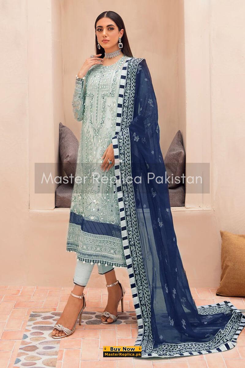 Dazzle in this alluring embroidered Master Replica from the Latest Designer Net Collection depicting the Finest Craftsmanship.