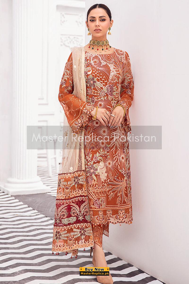 Ramsha Orange Chiffon Replica