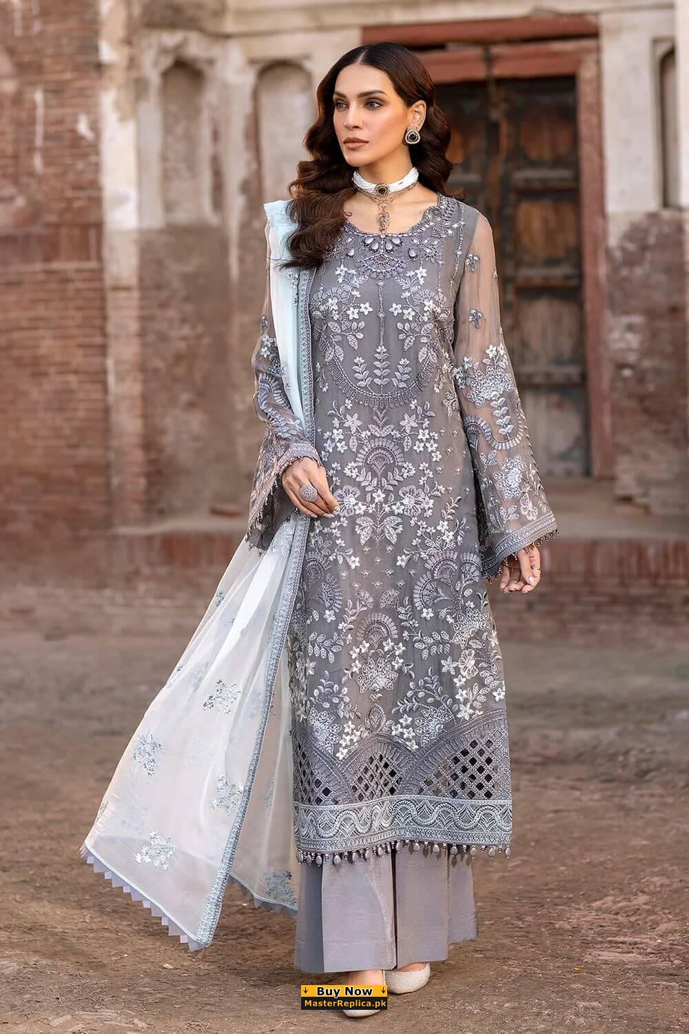 Embroidered Chiffon Front And Back With Embroidered Organza