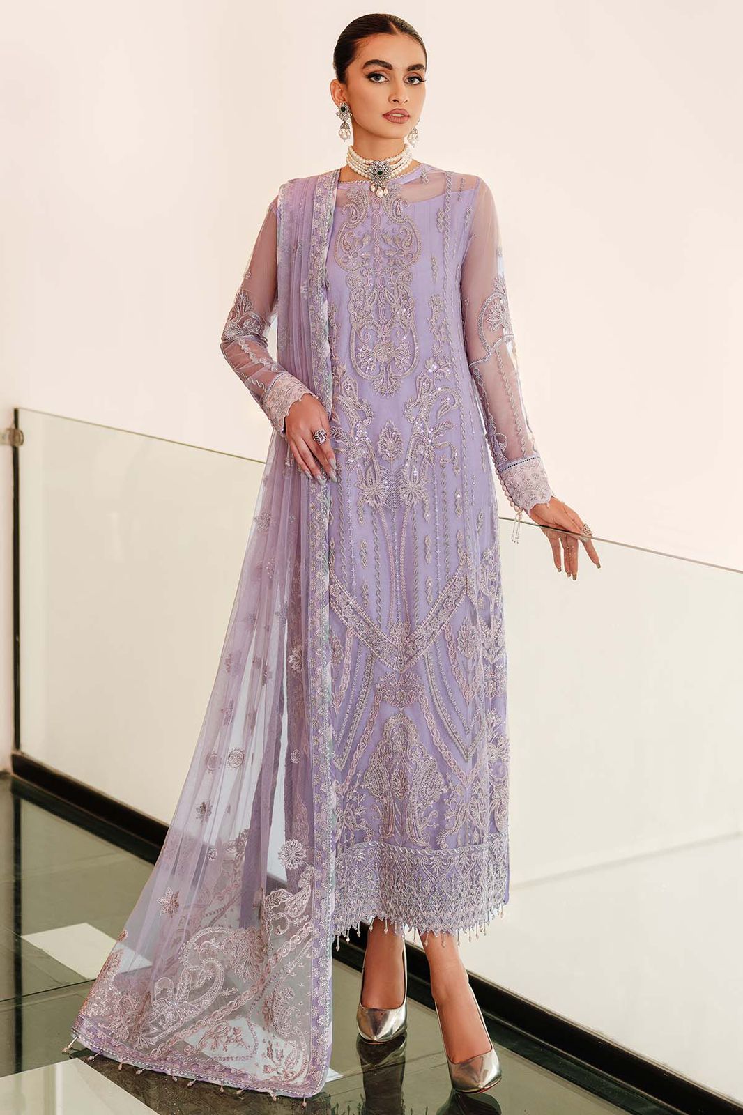 Fully Embroidered Net Dupatta With Pallu