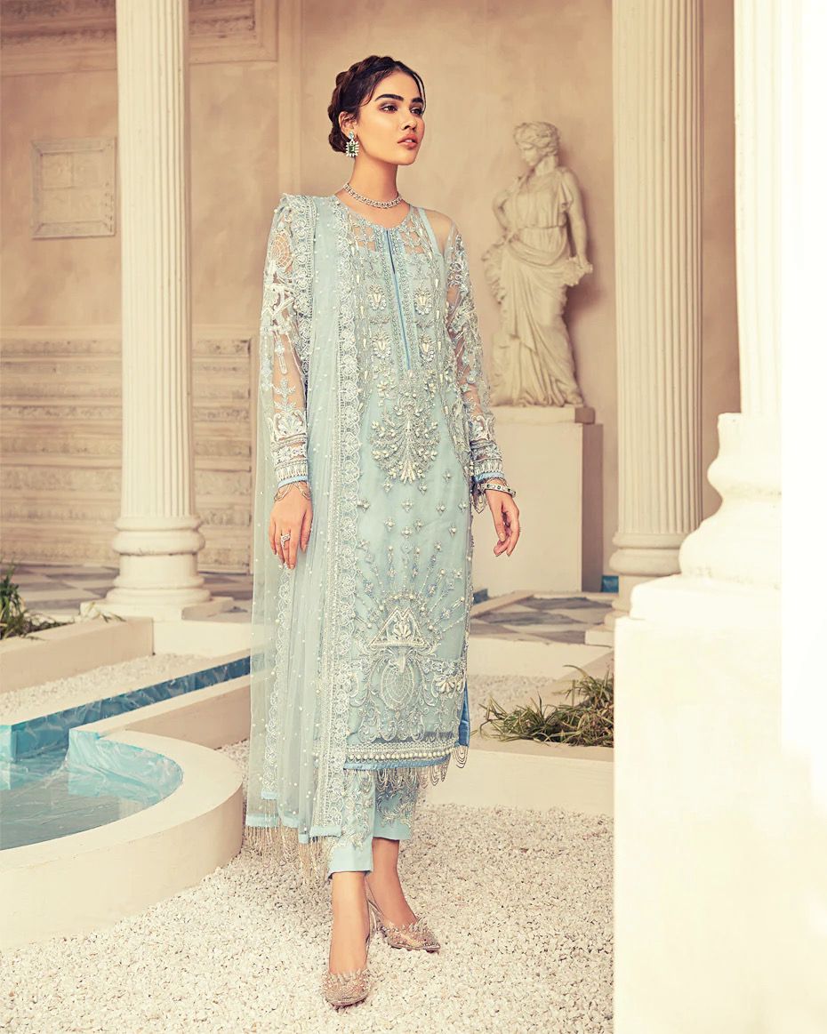 Bring out your beauty with this traditional yet modern embroidered Master Replica from the Latest Gulaal Chiffon Collection.