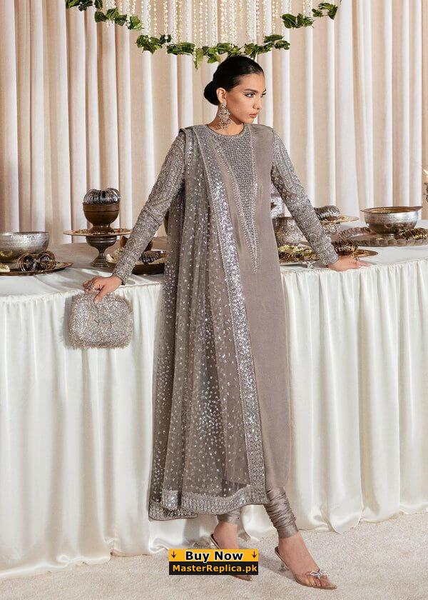 An example of beauty and elegance. Look breathtakingly stylish in this embroidered Master Replica Inspired by Husain rehar Wardrobe.