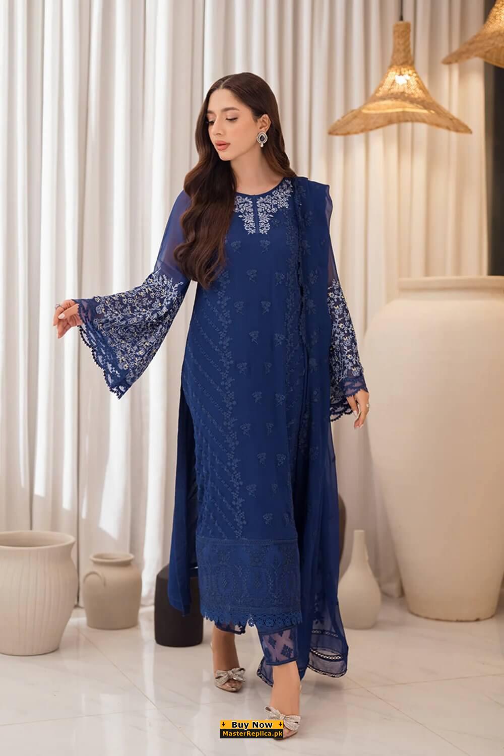 An example of beauty and elegance. Look breathtakingly stylish in this embroidered Master Replica from the Latest Azure Collection.