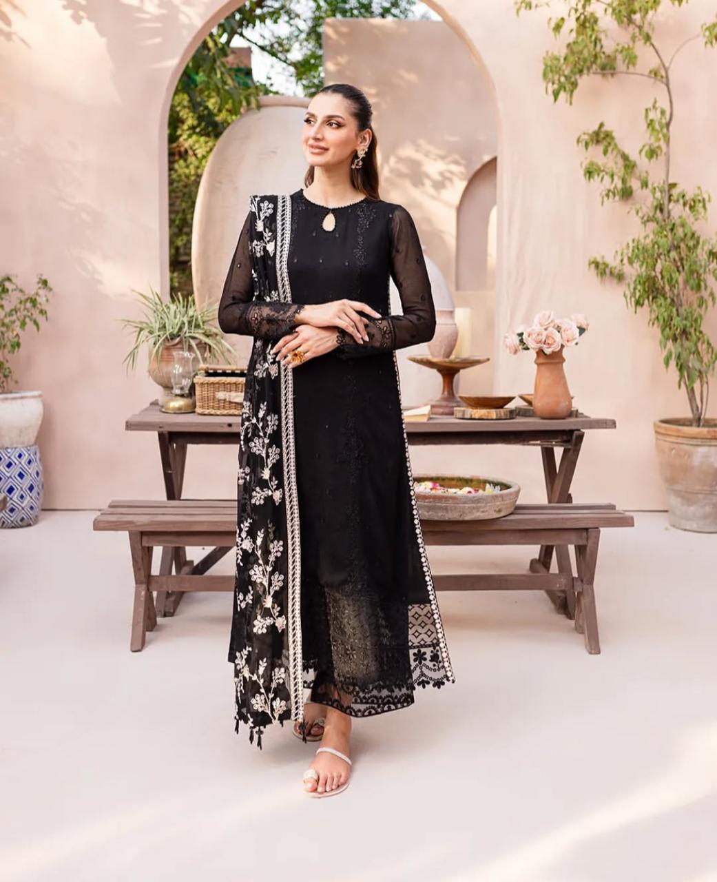 Embroidered Front With Spangle Work Daman Border With Cutwork