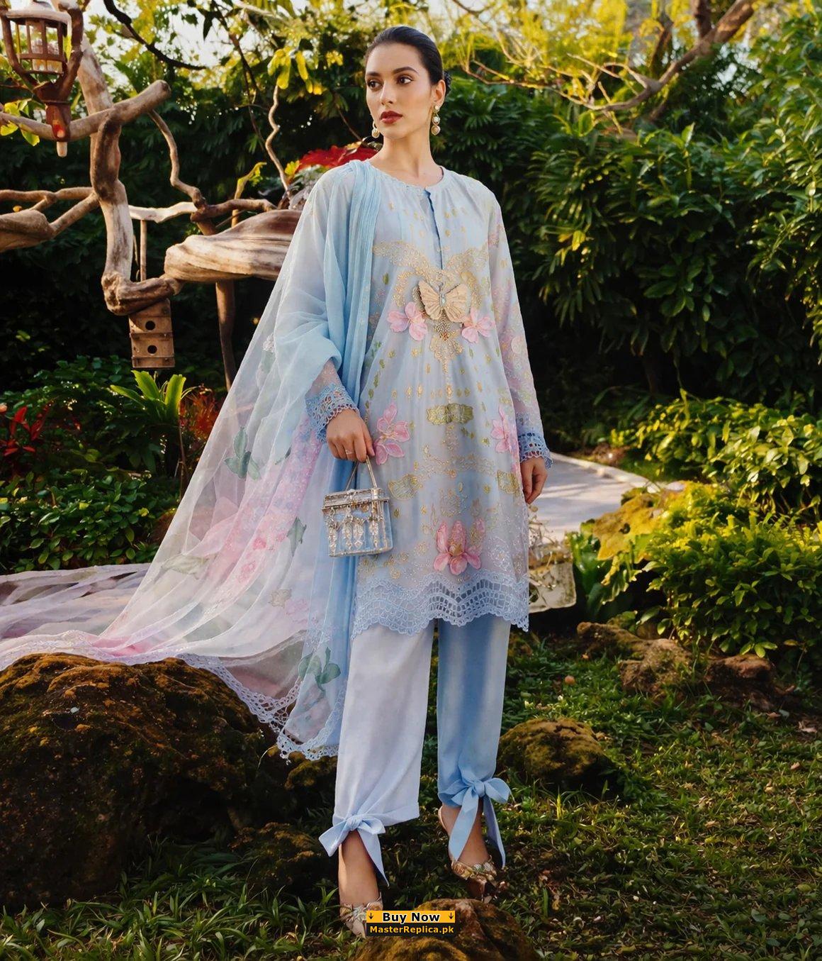 Maria b M Prints Ice Blue Lawn Replica