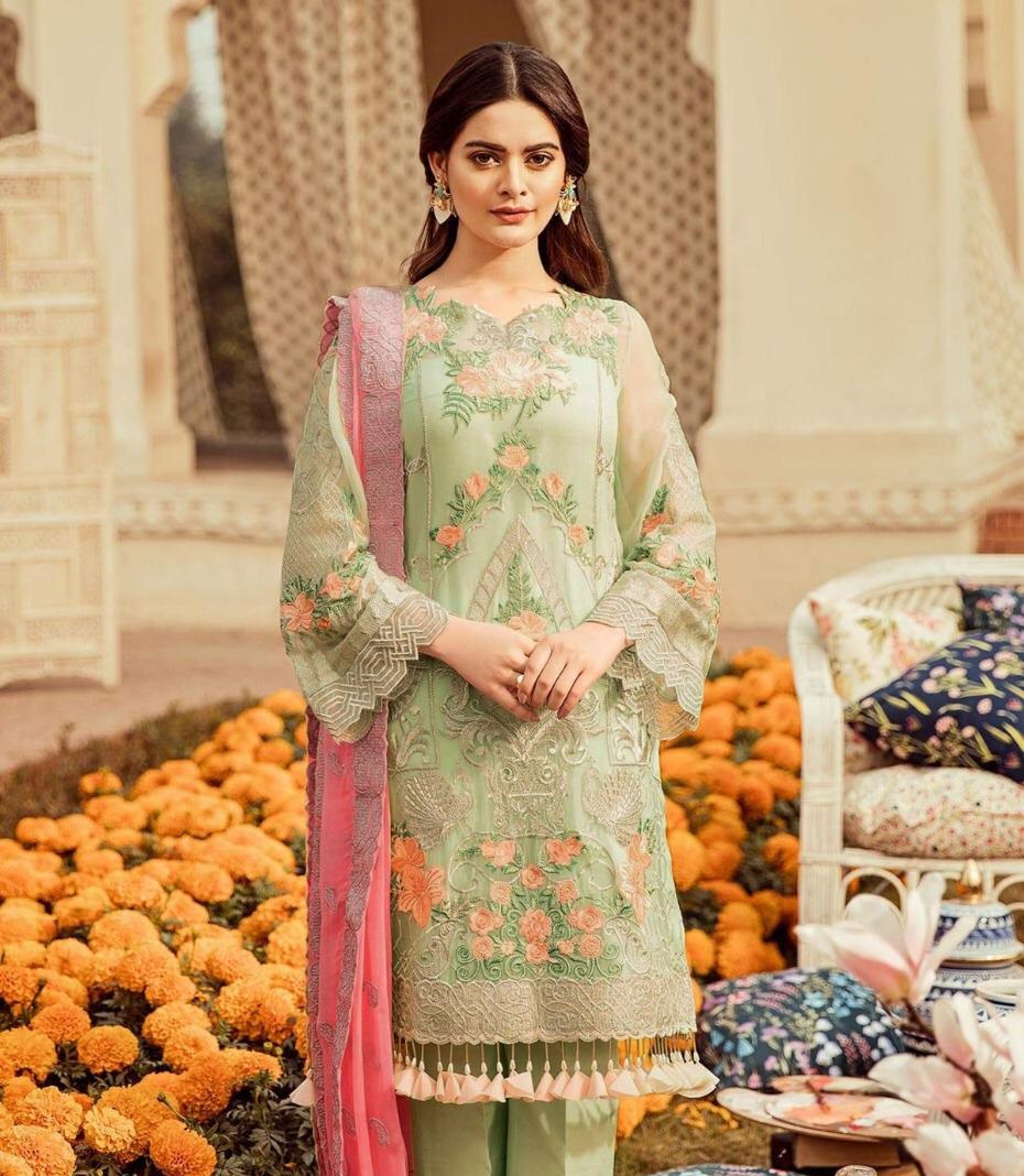 Fully Embroidered Chiffon Shirt Front enhanced with Embroidered Daman