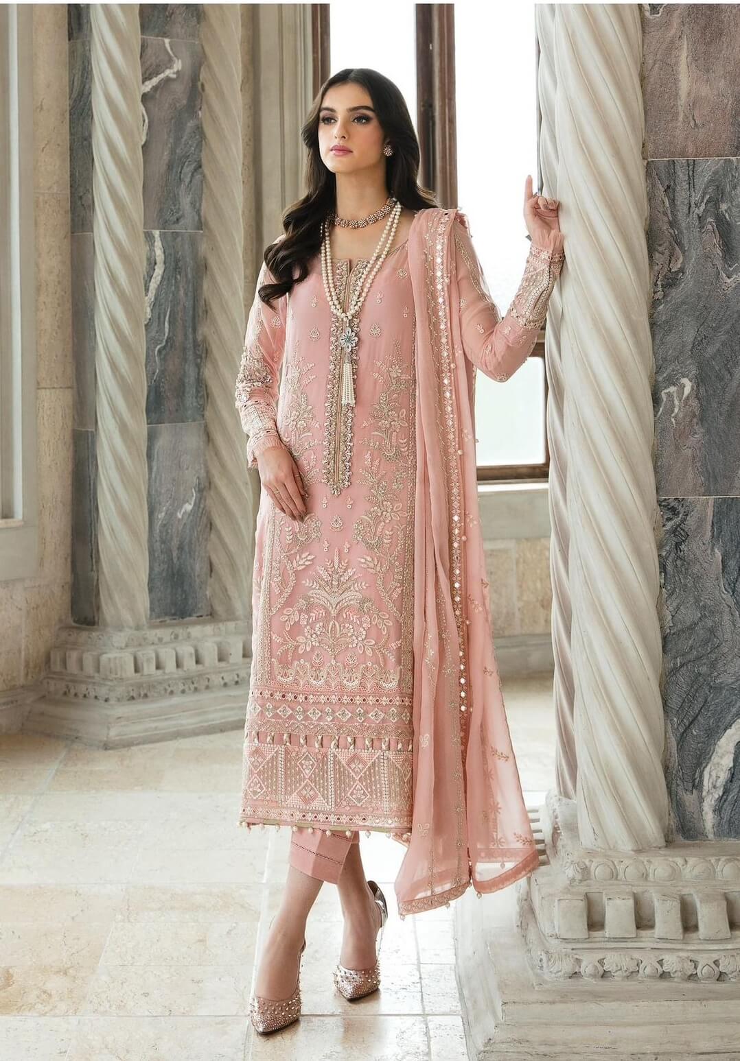 Embroidered Chiffon Front With Sequence Work And Embroidered Daman