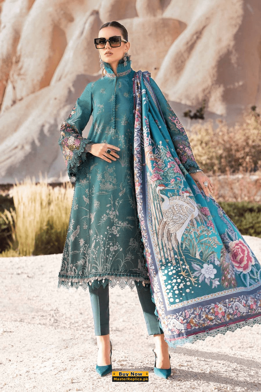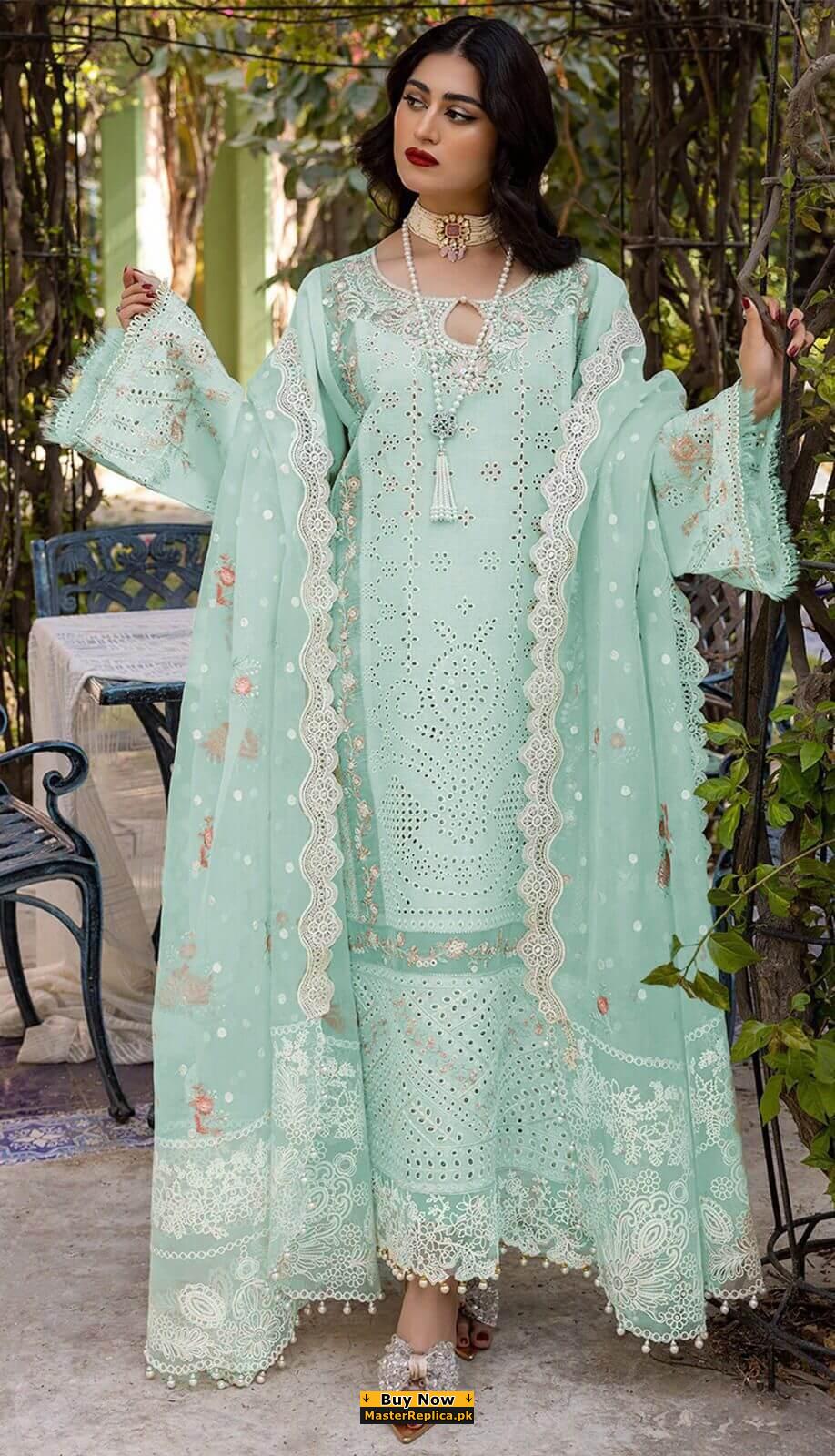 Make a statement in this intricately embroidered Master Replica from the Latest Rang Rasia Lawn Collection