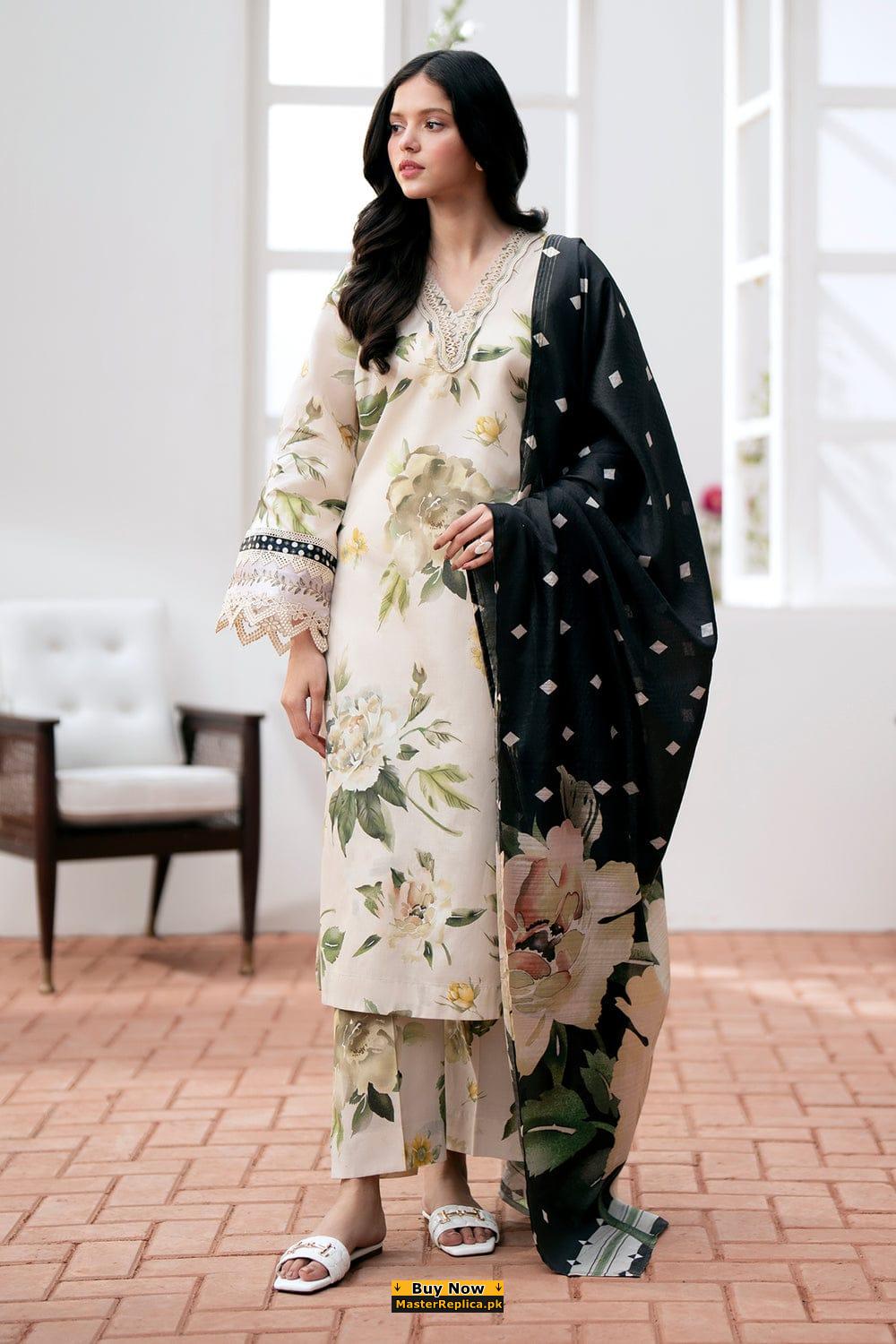 Introducing the Elaf Lawn Embroidered Replica – a stunning representation of tradition and chic from Elaf Latest Collection.