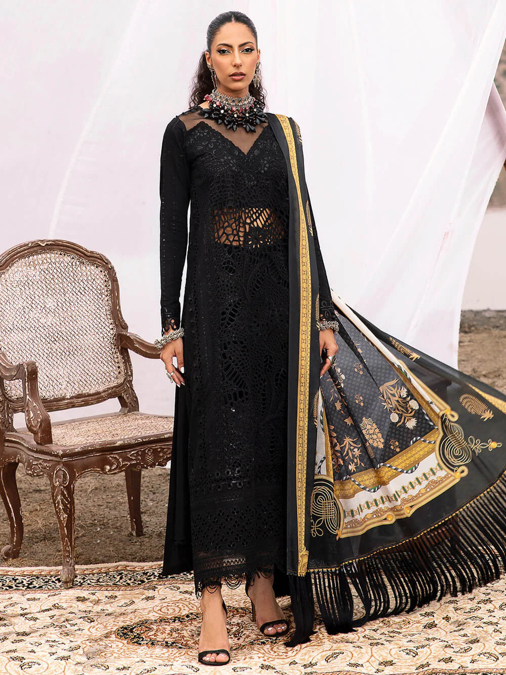 Dazzle in this alluring embroidered Master Replica from the Latest Baroque Collection depicting the Finest Craftsmanship.