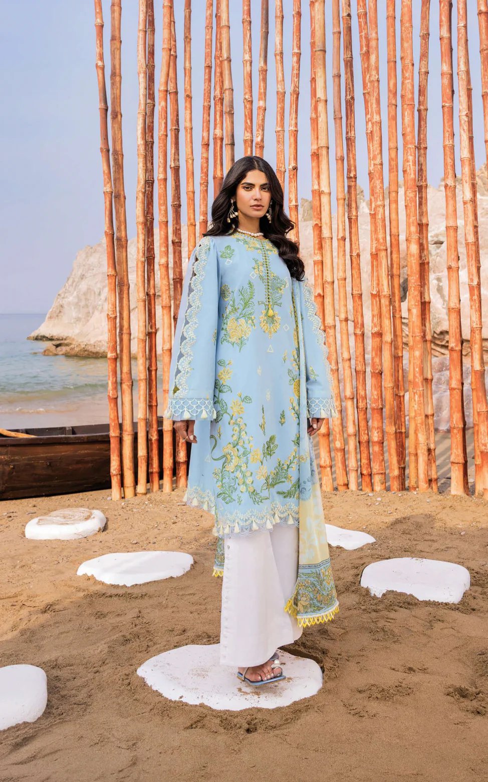 E broidered Lawn Front With Embroidered Schiffile Left And Right Panel With Embroidered