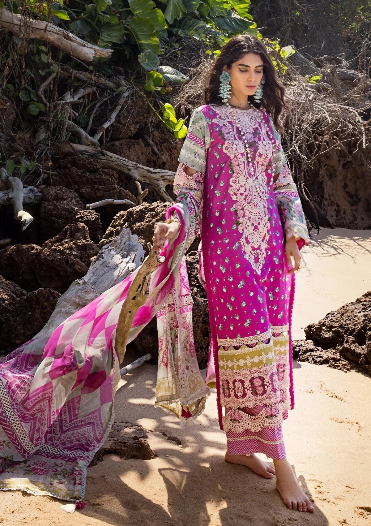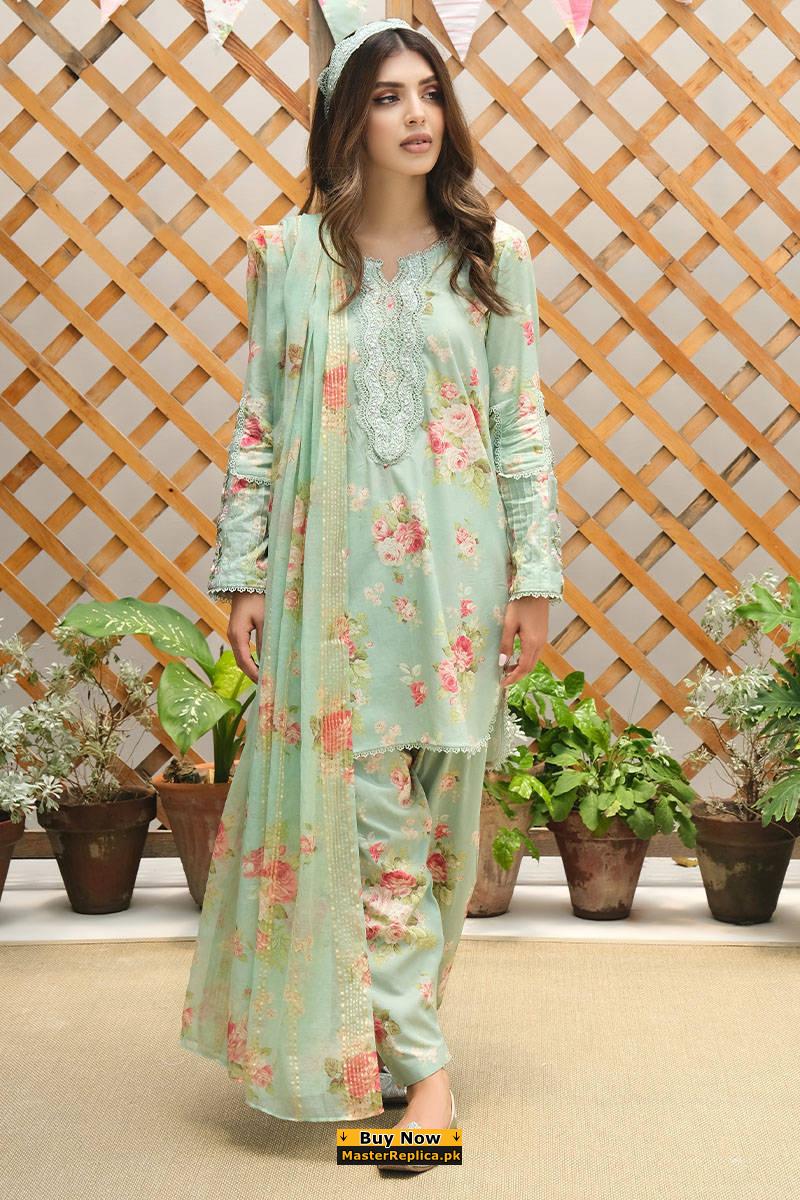 Printed Lawn Front With Embroidered Spangle Work With Embroidered Daman Border