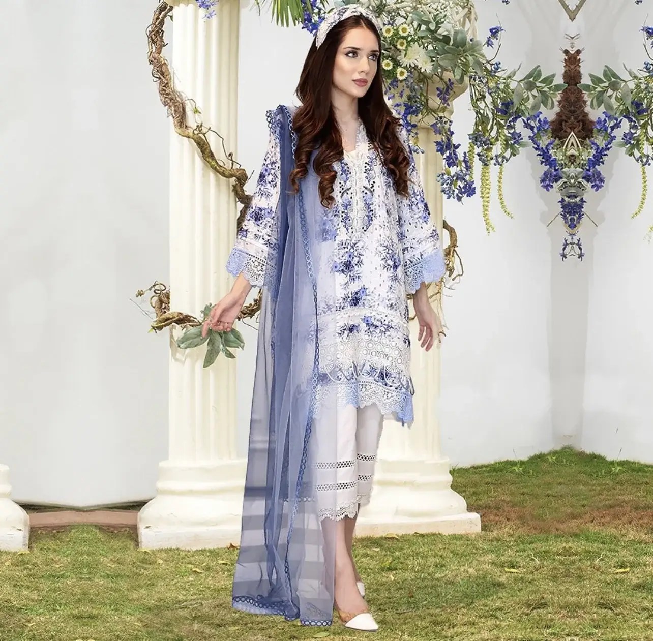Farida Hassan White Floral Lawn Replica
