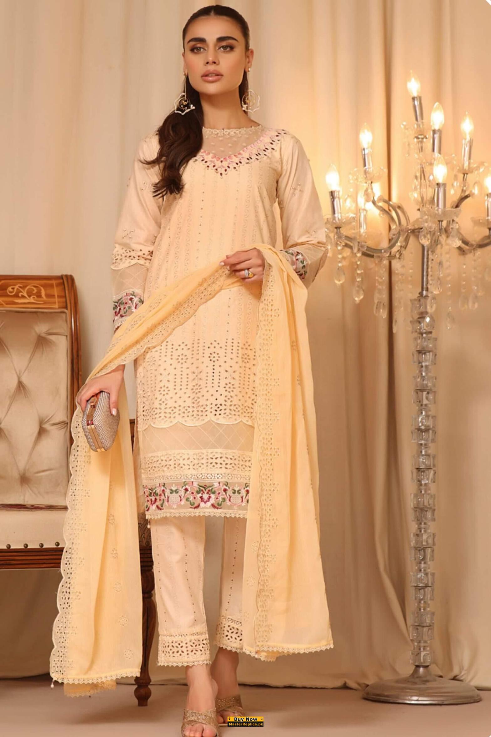 Alluring details, beautiful craftsmanship this Gorgeous Master Replica from the Latest Collection of Maria b is a perfect choice for any summer event
