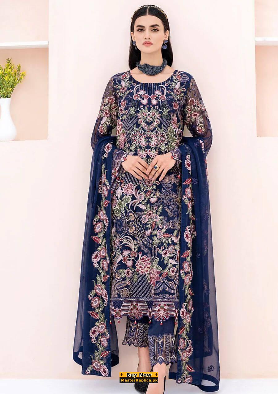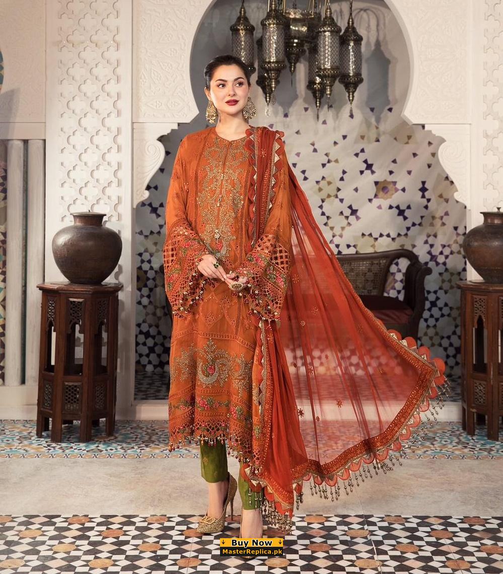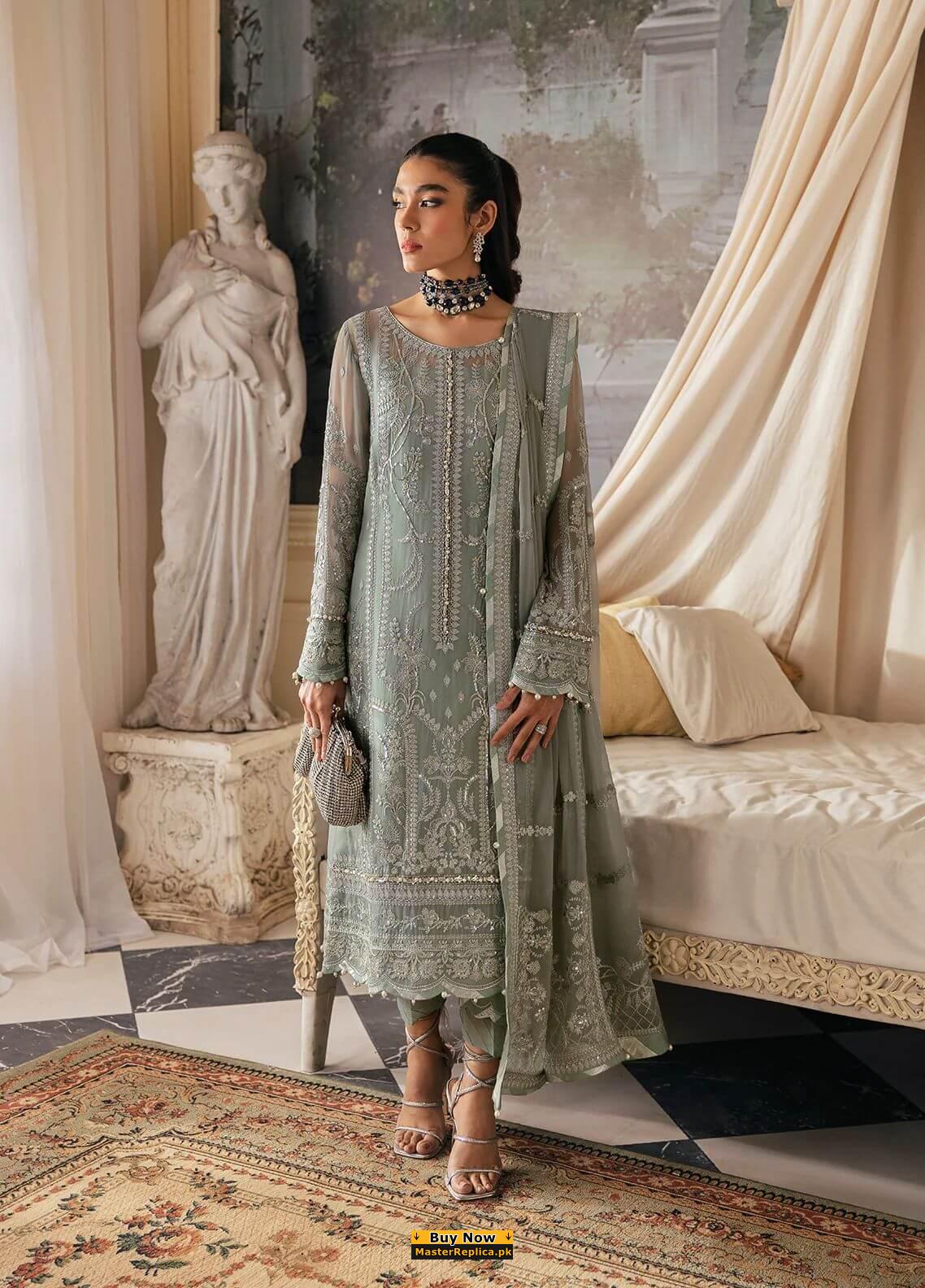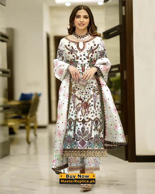 A must have creation for day to evening wear. This Master Replica from the Latest Collection of Baroque is perfectly designed with intricate embroidery.
