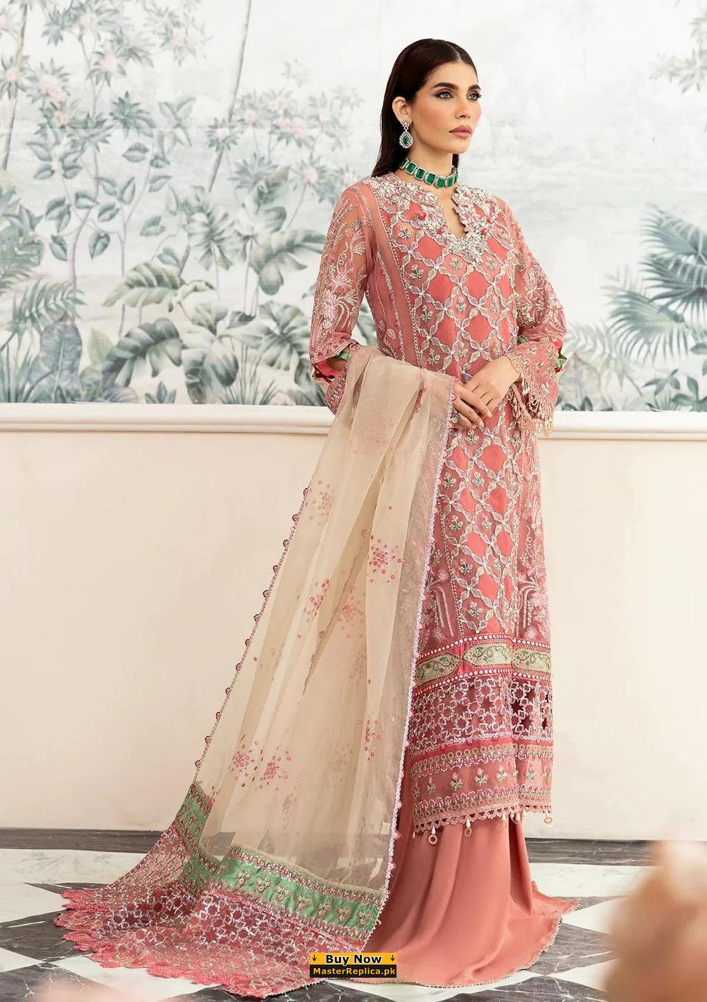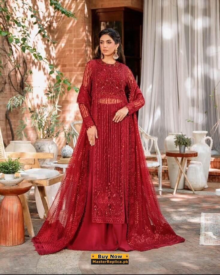 Dazzle in this alluring embroidered Master Replica from the Latest Designer Chiffon Collection depicting the Finest Craftsmanship.