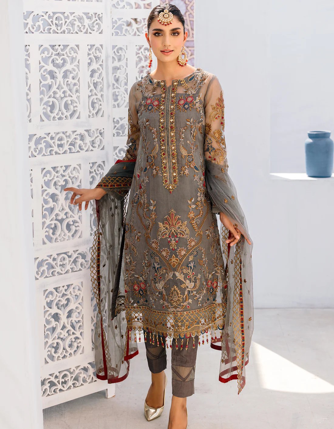 Embroidered Organza Front With Spangle Work With Adda Work With Embroidered Daman Border With Attach