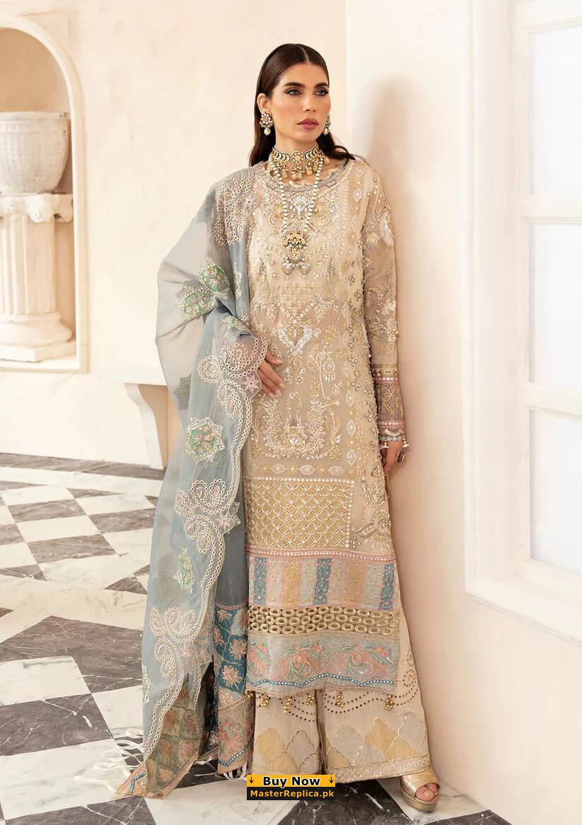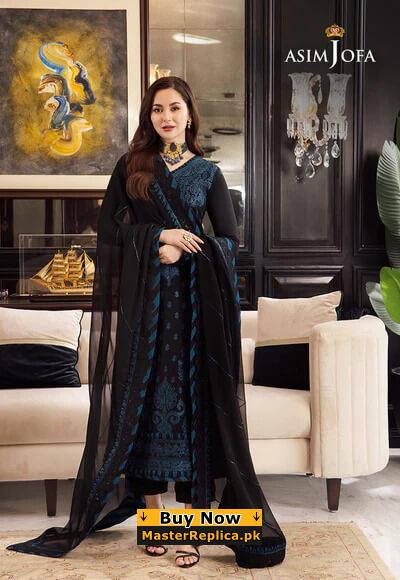 Portraying a fusion of baroque and vintage this Gorgeous Master Replica from the Latest Asim jofa Chiffon Collection is perfect for any occasion.