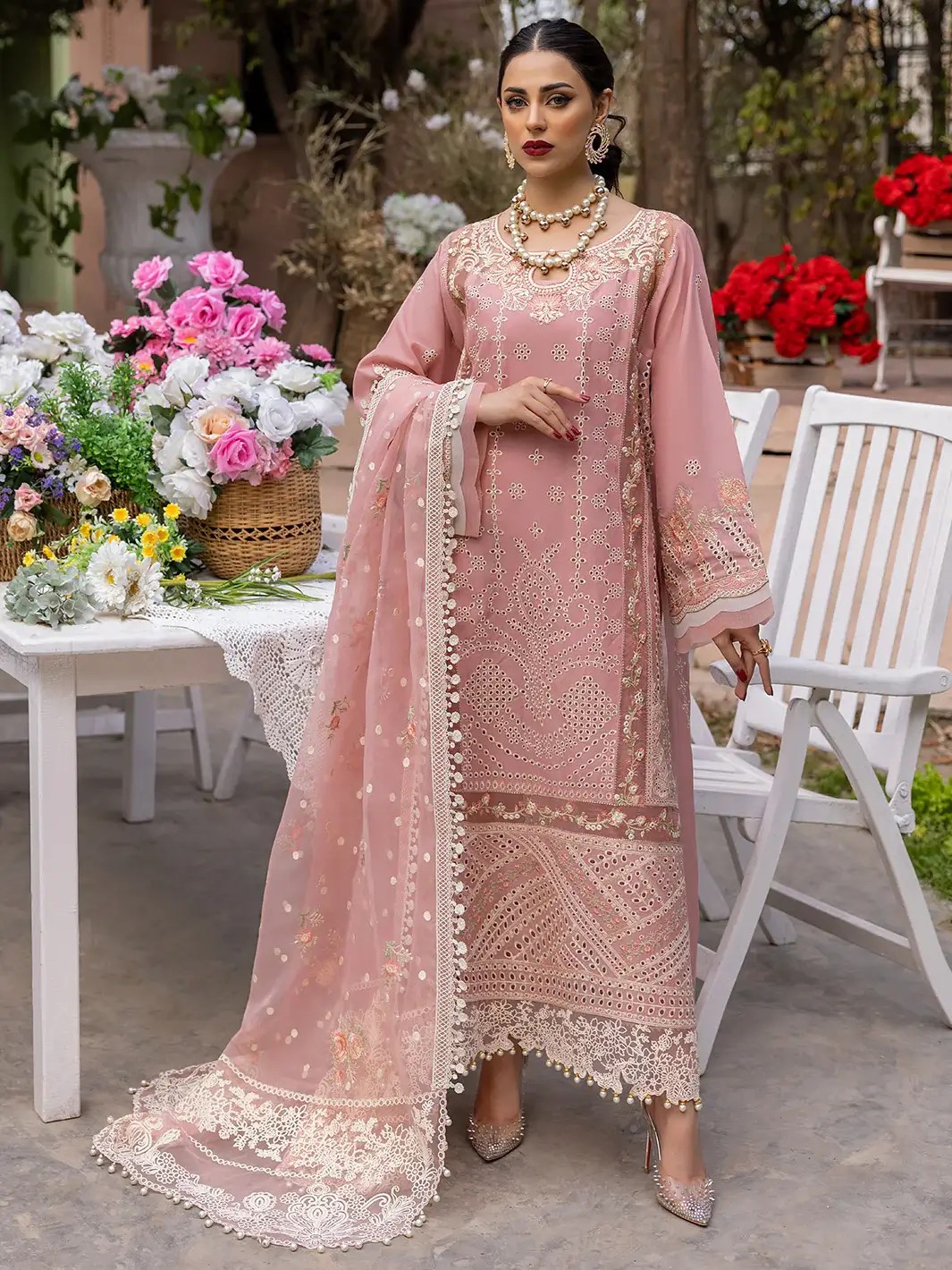 Fully Embroidered Chiffon Front And Back With