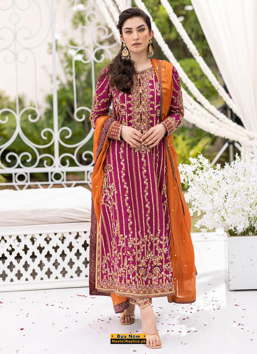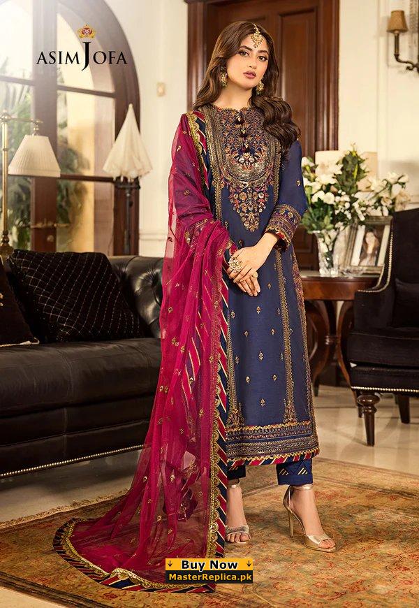 Gussy Up The Glamour With This Intricate Embroidered Master Replica From The Latest Pakistani Asim Jofa Chiffon Collection.