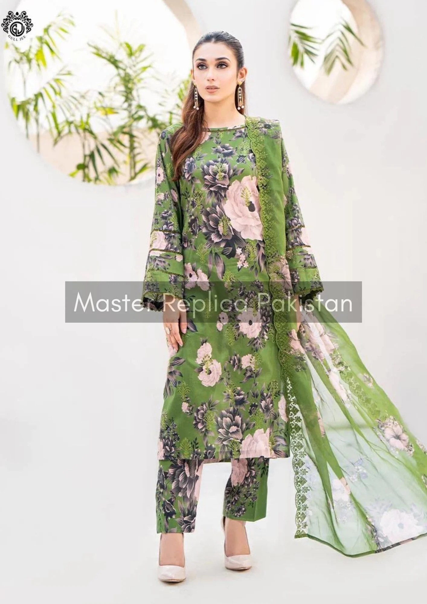Designer Green Swiss Lawn Replica