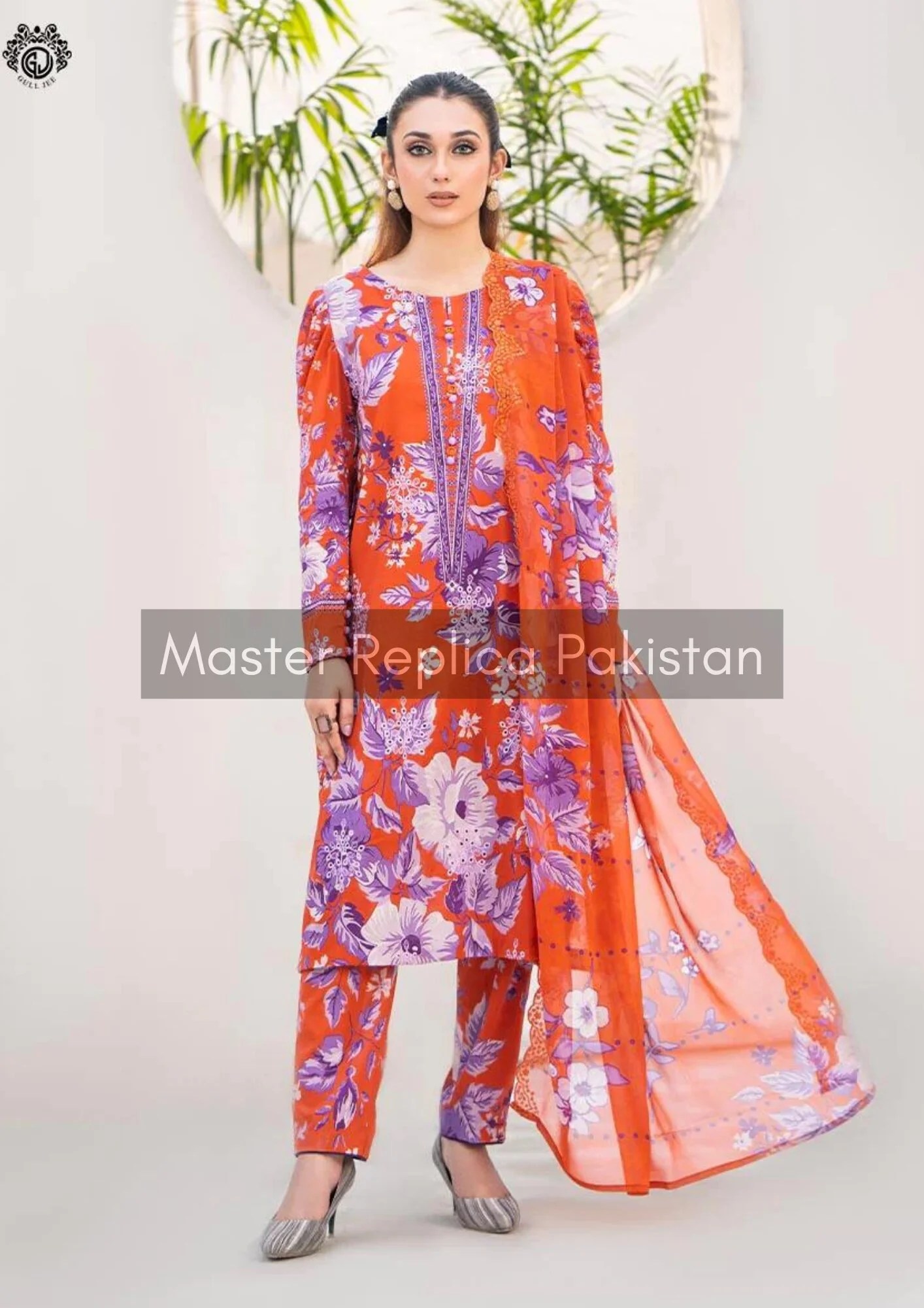 Designer Orange Swiss Lawn Replica