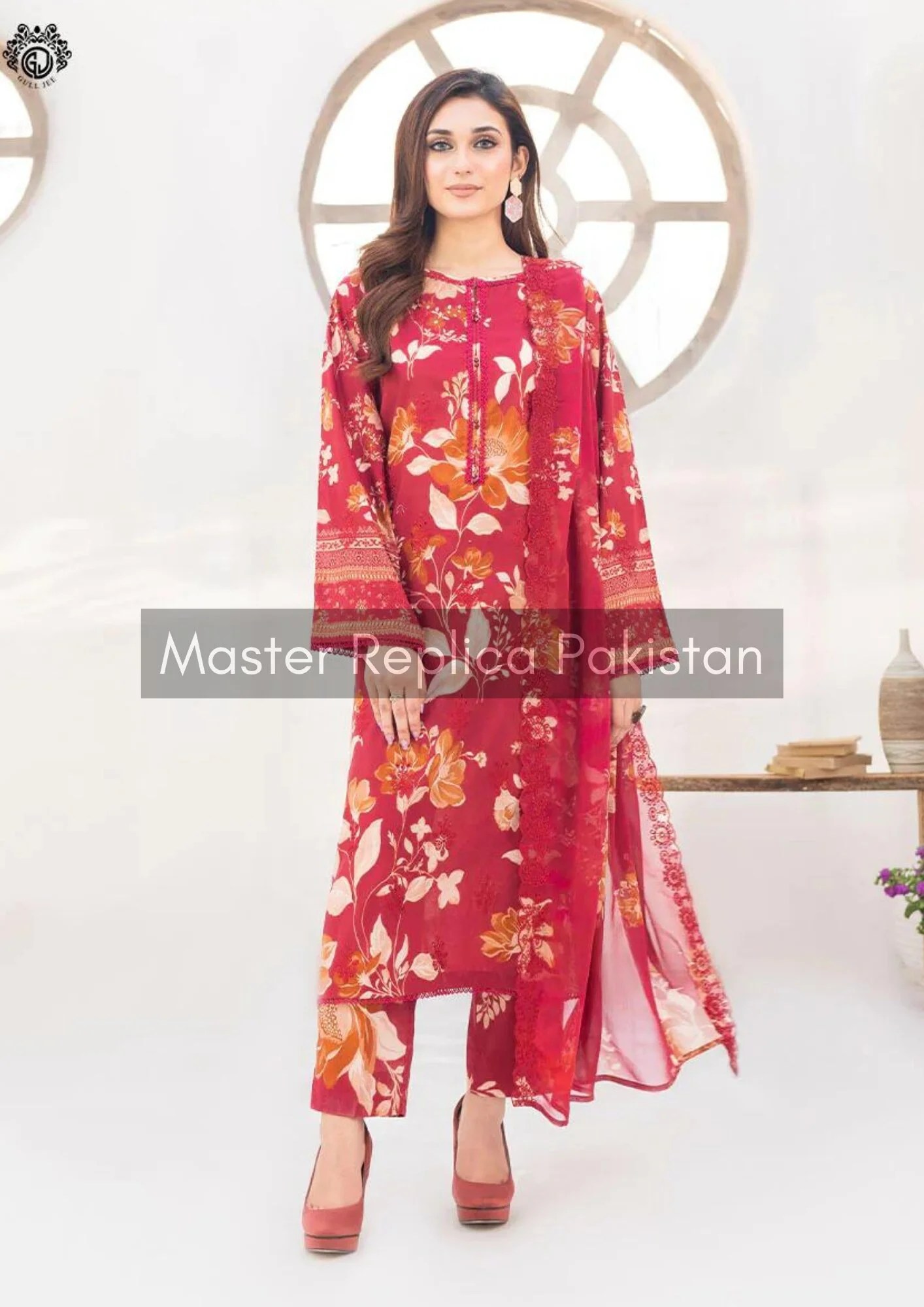 Designer Red Swiss Lawn Replica