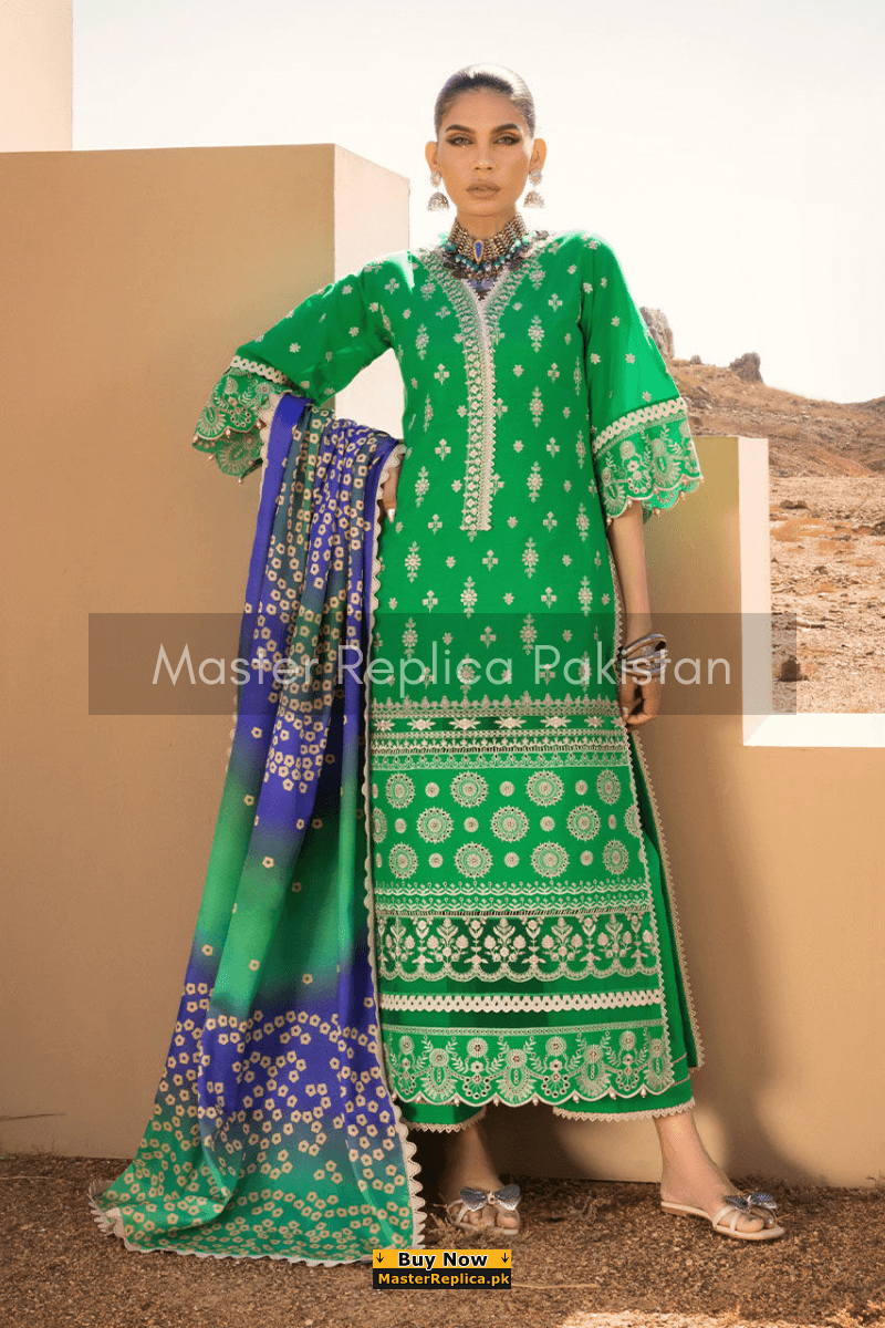 Indulge in to a dreamy confection of color and embroidery in this perfect Master Replica from the Latest Designer Summer Collection.