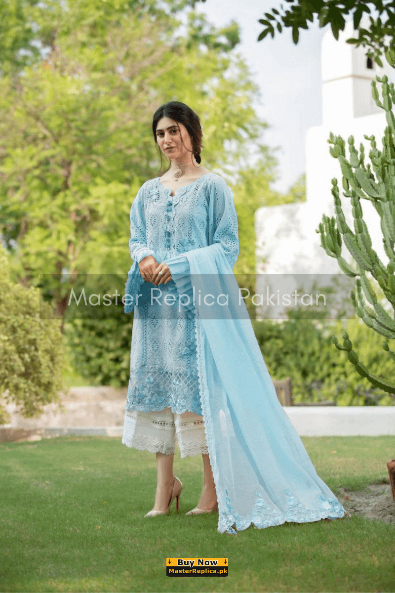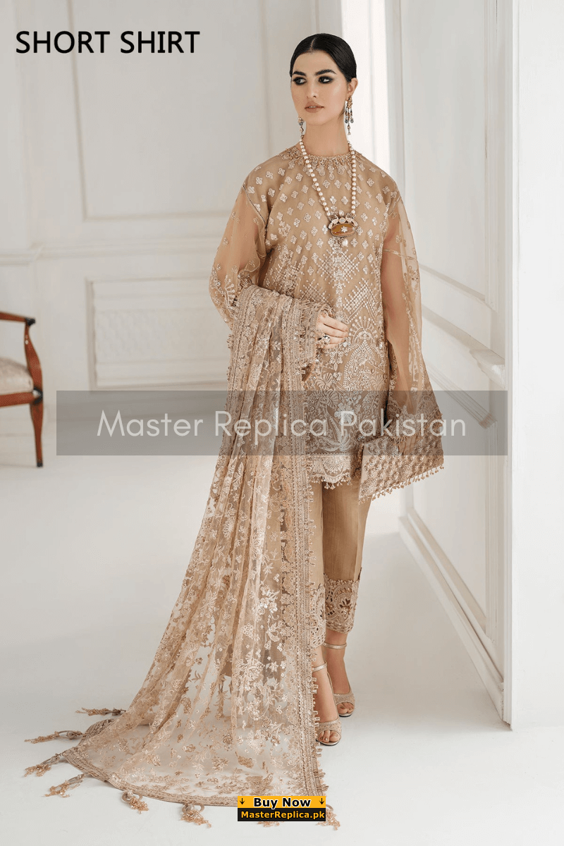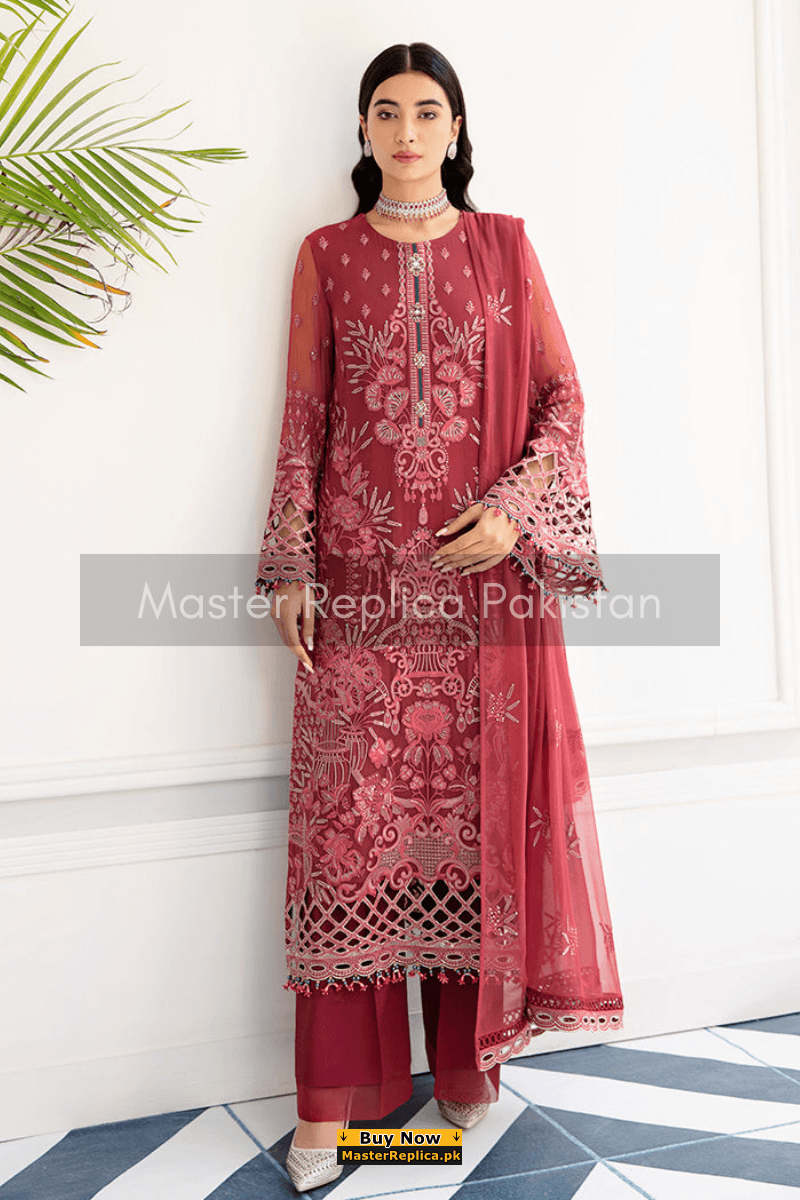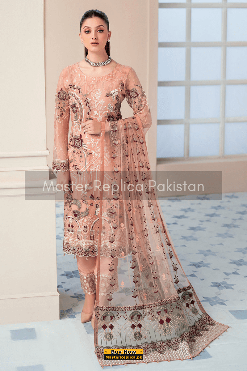 An example of beauty and elegance. Look breathtakingly stylish in this embroidered Master Replica from the Latest Collection of Ramsha.