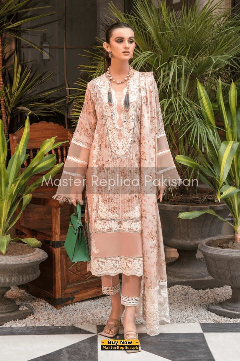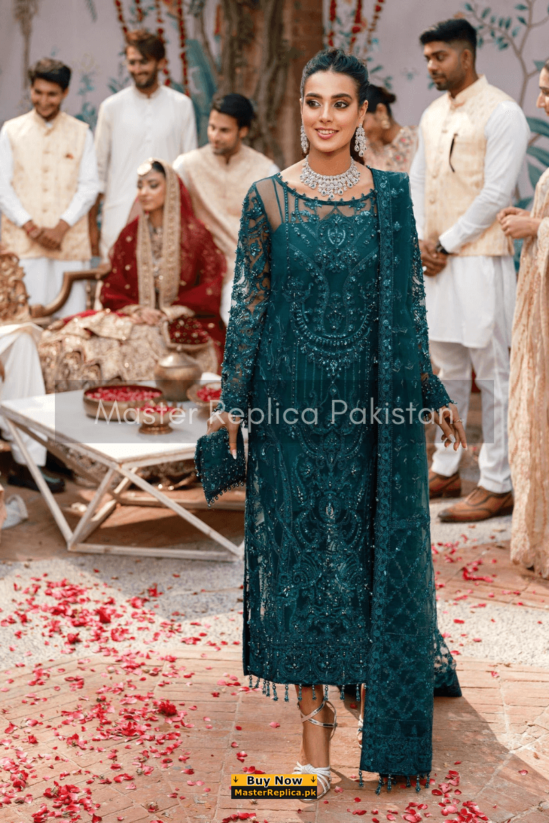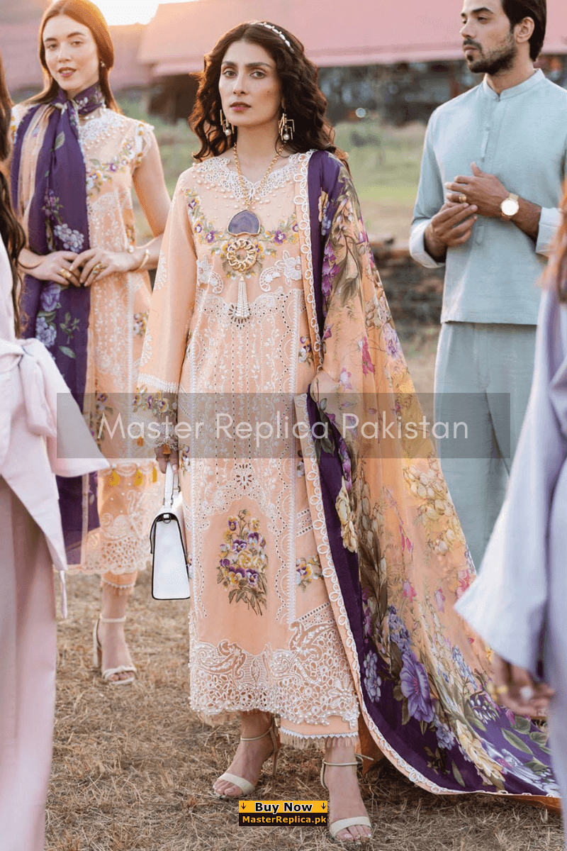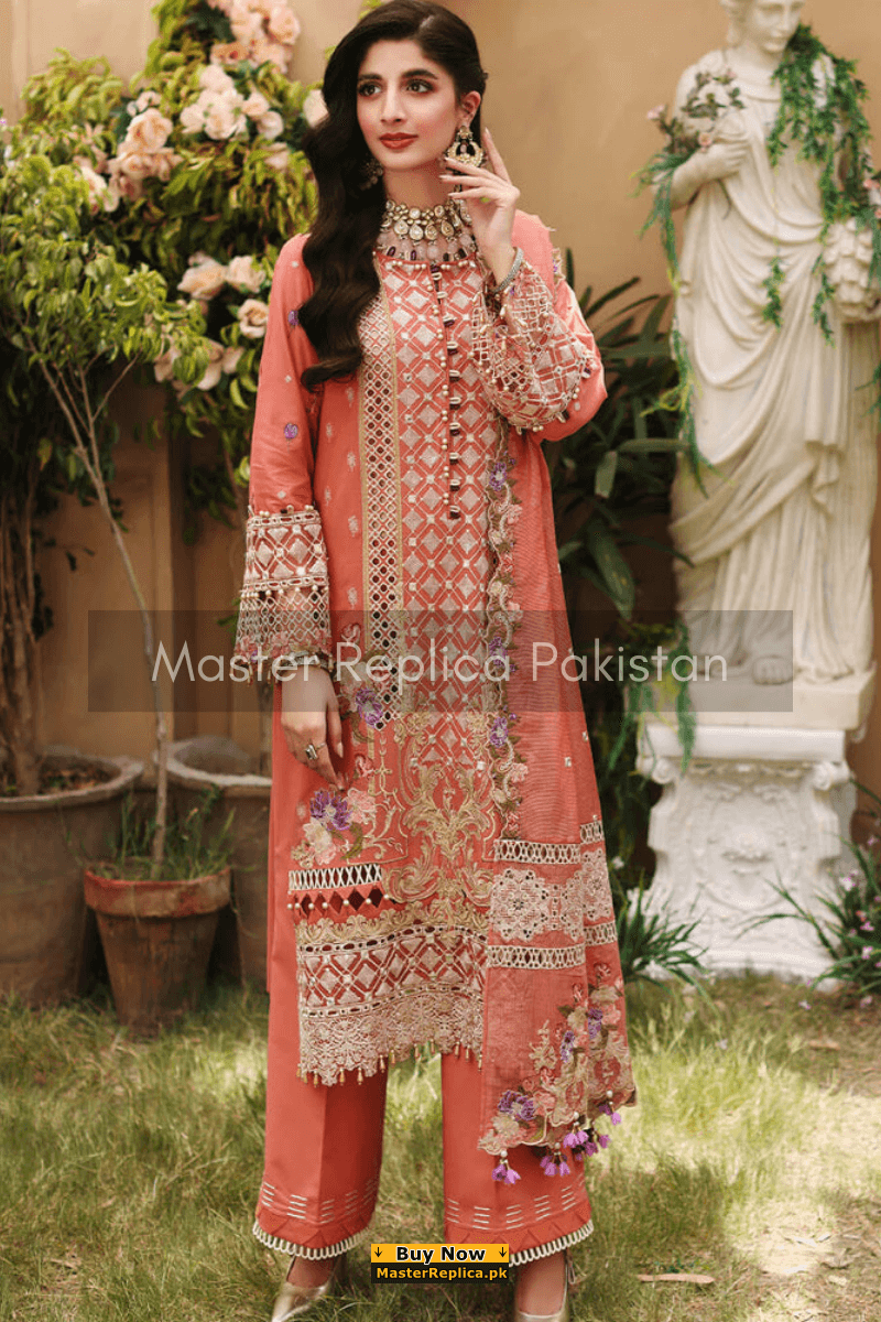 An example of beauty and elegance. Look breathtakingly stylish in this embroidered Master Replica from the Latest Collection of Kanwal Malik.