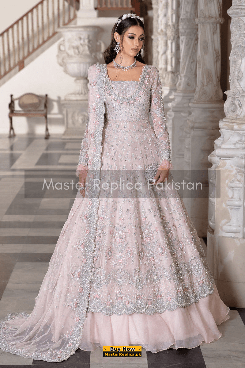 Maria B Pale Pink Net Maxi Replica