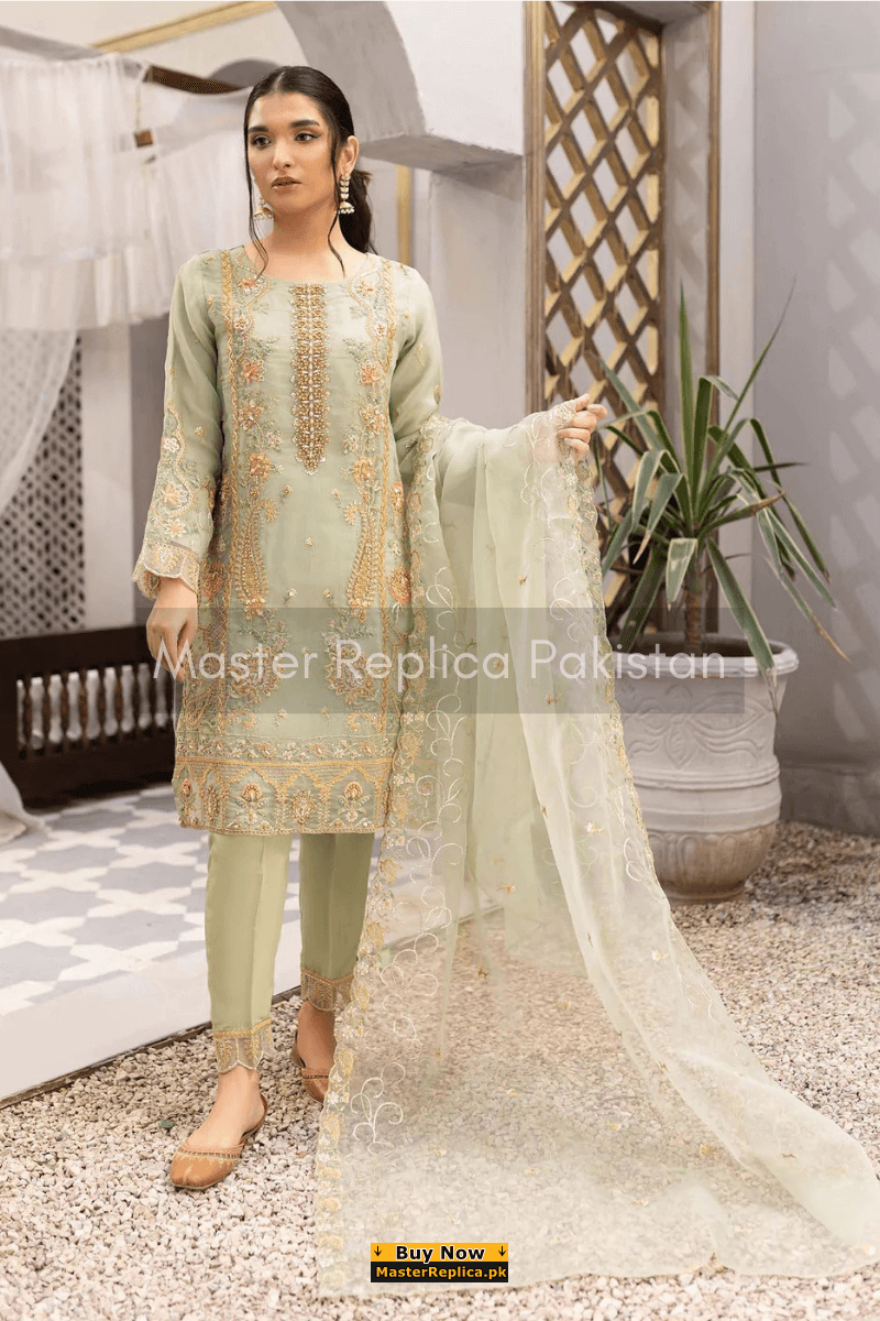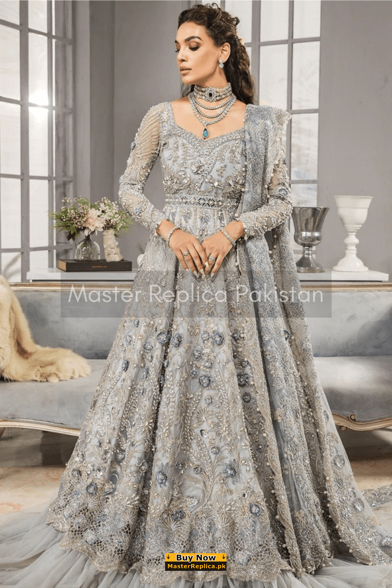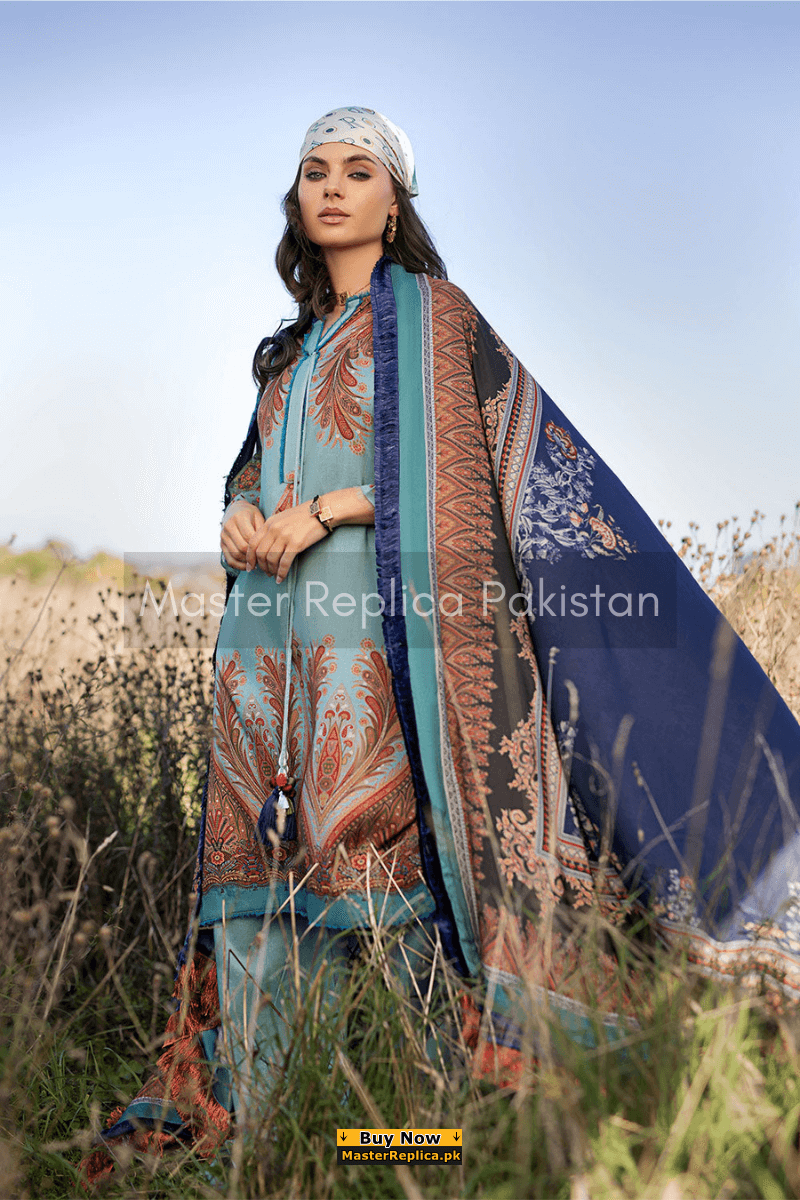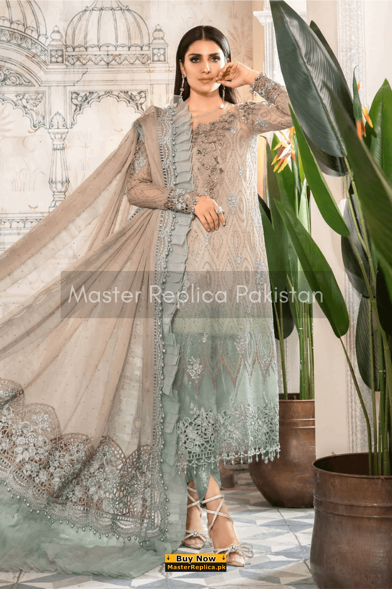 An example of beauty and elegance. Look breathtakingly stylish in this embroidered Master Replica from the Latest Collection of Maria B.