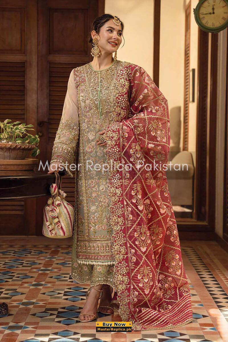 Make a chic statement in this Stunning Master Replica from the Latest Bridal Collection of your favorite Designer Unstitched Wedding Collection.