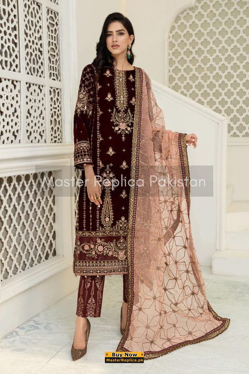 In artistic vision of classic style this Stunning Master Replica from the Latest Collection of Maria B is perfect for any occasion.